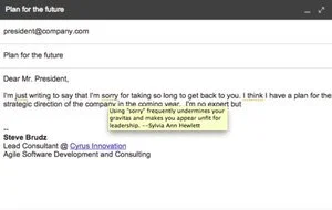 Just Not Sorry will highlight all the hedging and apologetic words in your email drafts. Sorry to Outlook users, but this gem only applies to Gmail. The good news? We teach you what to look for in this LinkedIn article on hedging—that should be enough to help you start trimming your hedges from your sentences!